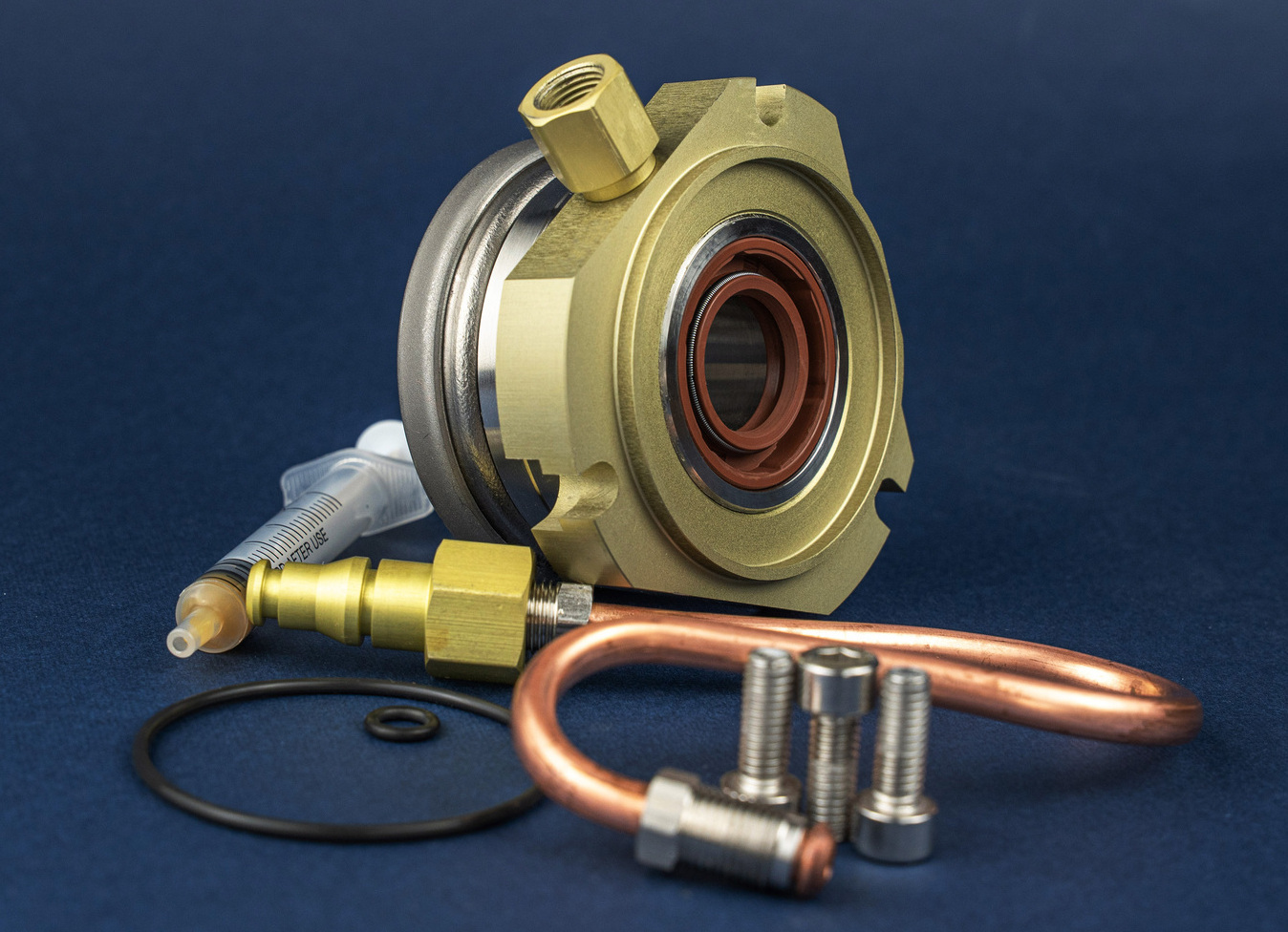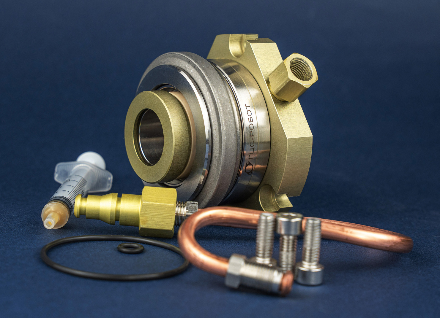Используются проверенные временем материалы: анодированный и неанодированный сплав алюминия, очень стойкий к коррозии, нержавеющая сталь (крепеж и штуцеры нагнетательной магистрали, поршень). Обработка производится на высокоточном оборудовании с ЧПУ. Уплотнения фланца (кольцо) и первичного вала (сальник) — из фторкаучука (FKM), а не NBR (не справляется с утечками трансмиссионного масла из КПП, потому что не терпит высокую температуру долго). В подшипнике — специальная смазка для тяжелых условий работы (рабочая температура до 200 градусов Цельсия, а вытекать начинает — только после 300, а, например, сцепление LuK уже после 240 градусов меняет свойства и начинает очень быстро изнашиваться).