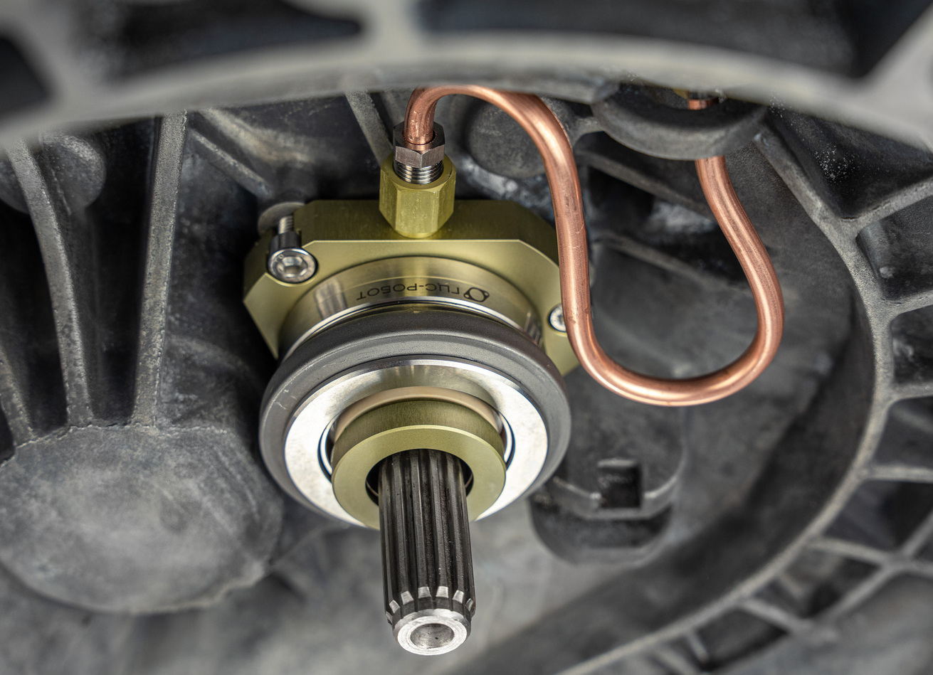 - применен сальник первичного вала значительно больших размеров (для новых автомобилей заводского небльшого сальника было обычно достаточно, но первичный вал «с пробегом» такой жесткий сальник не может загерметизировать), изготовлен из более стойкого материала (FKM, такой материал намного лучше переносит повышенную температуру в зоне трения уплотняемых поверхностей), уплотнительное кольцо фланца тоже из FKM — в сумме это практически исключает утечки трансмиссионного масла через РЦС. Именно утечки масла в районе фланца РЦС — это основной путь, через который трансмиссионное масло попадает в гидропривод сцепления. Да, пусть этот путь весьма неочевидный, но LuK, FTE, Sachs и менее именитые производители ничего с этими утечками не делают: поршень «размазывает» масло по цилиндру и понемногу переносит масло в полость с тормозной жидкостью (а попадение очень небольшого количества масла в тормозную жидкость приводит к разрушению уплотнений из EPDM). «Черная» жидкость в расширительном бачке — это признаки разрушения уплотнений из EPDM из-за попадания масла, и в этом случае просто замены тормозной жидкости недостаточно, потому что уплотнения уже отравлены, «разбухают» и, увеличиваясь, заклинивают поршни ГЦС и РЦС. Понятно, что при утечках масла оно попадает и на сцепление — сцепление придется заменить, это все равно что на тормозные колодки масло напылить, его не смыть обезжиривателем. Маленький заводской сальник делает много проблем;