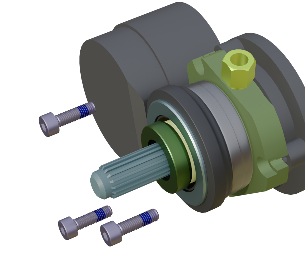 6. Разместить цилиндр сцепления на фланце КПП, совместив крепежные отверстия фланцев. Смазать резьбу комплектных болтов фиксатором резьбы средней прочности и притянуть фланец цилиндра к КПП (момент затяжки 18-25 Нм).