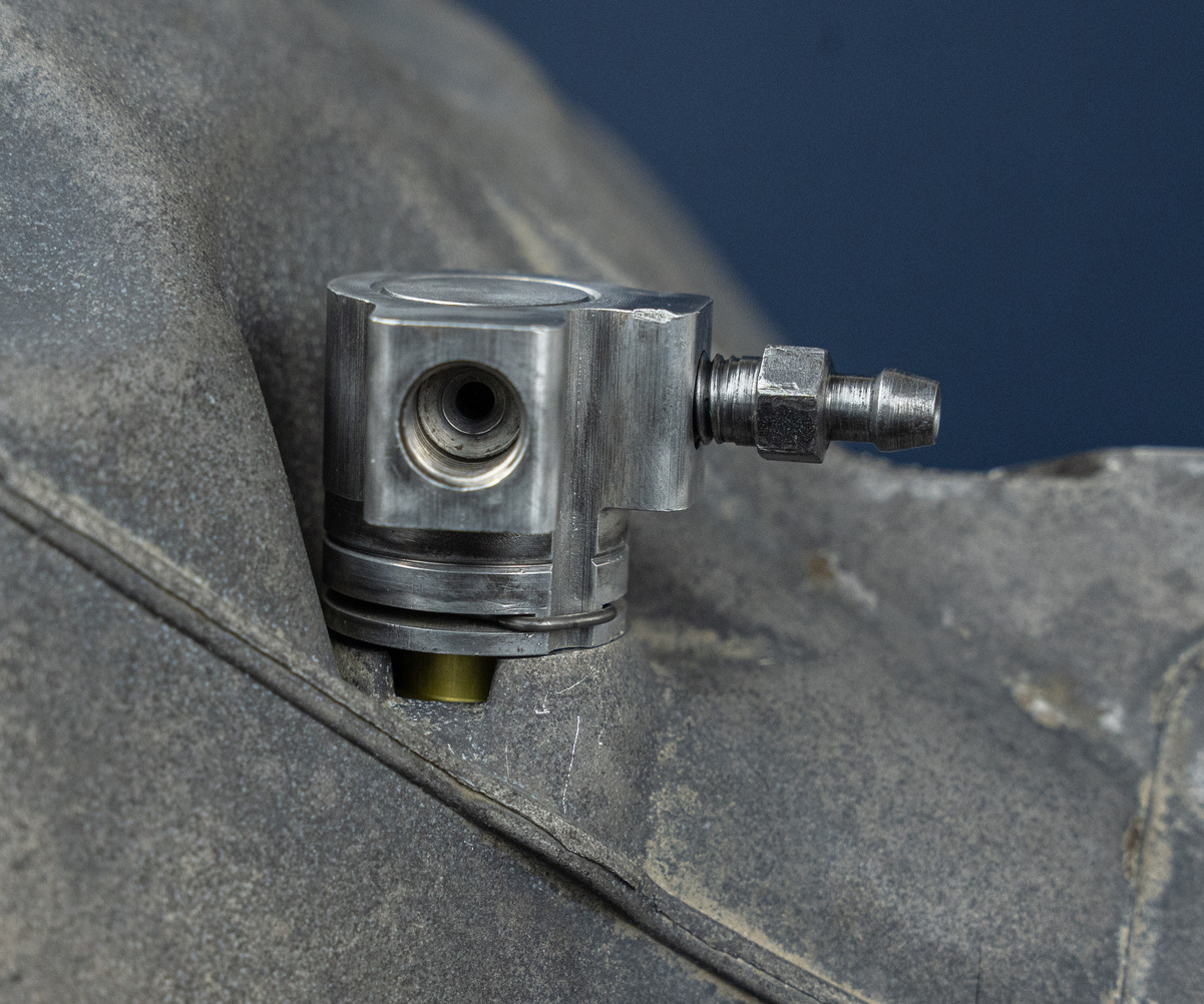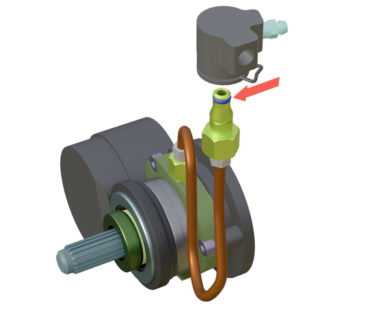 7. Присоединить нагнетательную магистраль к цилиндру: на иллюстрации видно, какой стороной трубка совмещается с цилиндром.