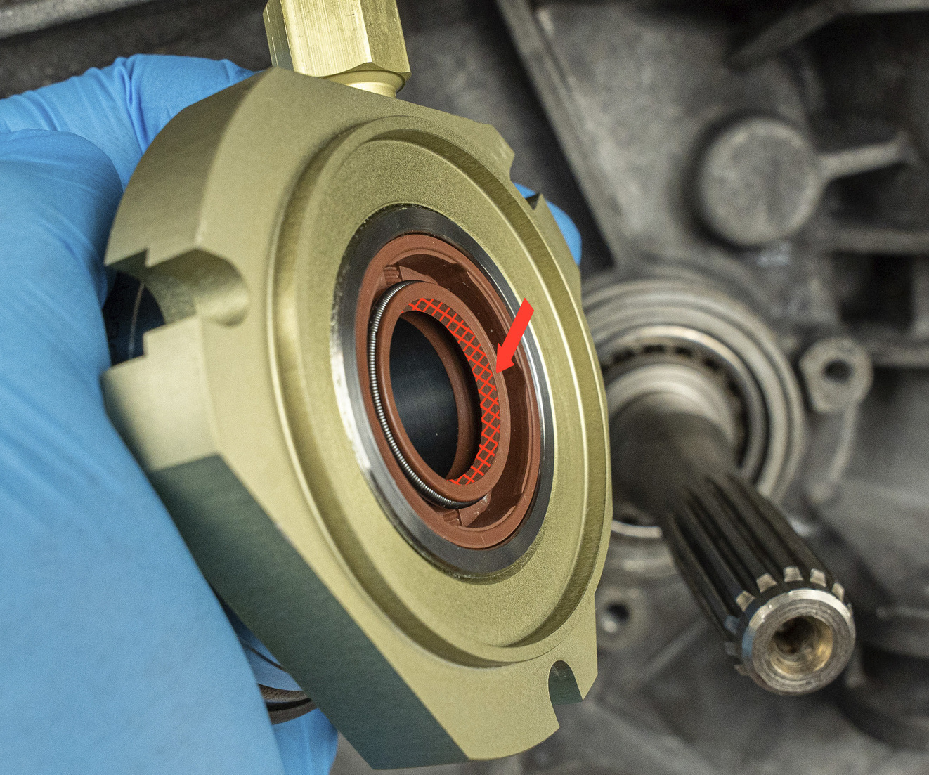5. Несмотря на то, что мы уже смазали поверхность вала, смазываем и уплотняющую кромку сальника во фланце РЦС. Аккуратно смазать трансмиссионным маслом нужно только кромку сальника, чтобы это масло больше никуда не попало — как на иллюстрациях. Так мы гарантируем отсутствие сухого трения сальника цилиндра сцепления и выход его из строя в первые минуты запуска двигателя автомобиля.